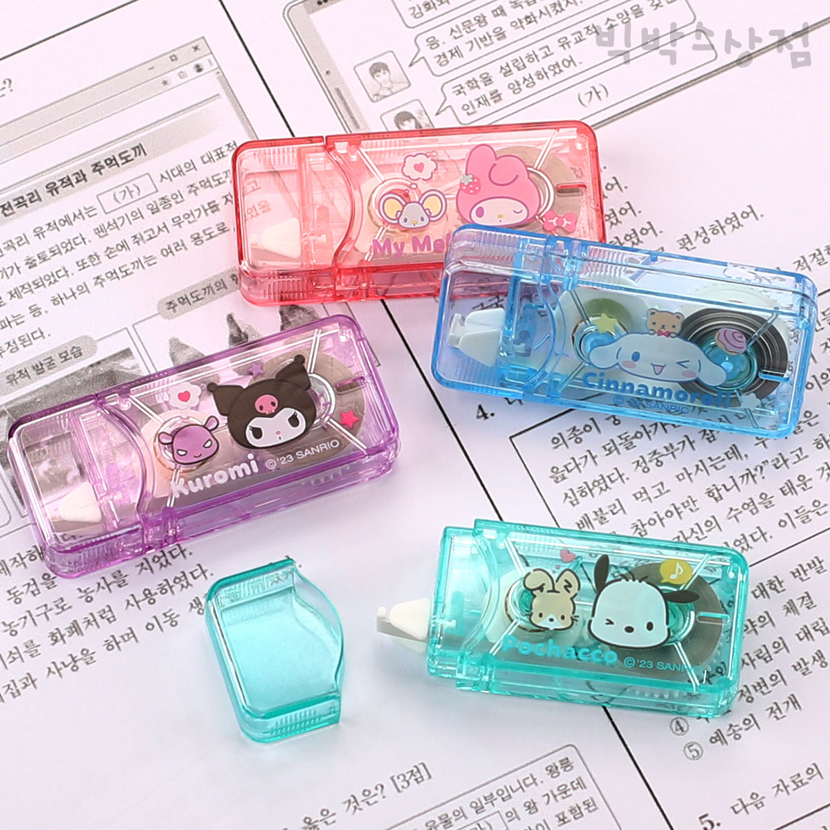 산리오 미니 수정테이프 5mmx6M 캐릭터 펜타입 수정화이트 수정용품 사무용 안전캡 필기구 시나모롤 쿠로미 포차코 마이멜로디