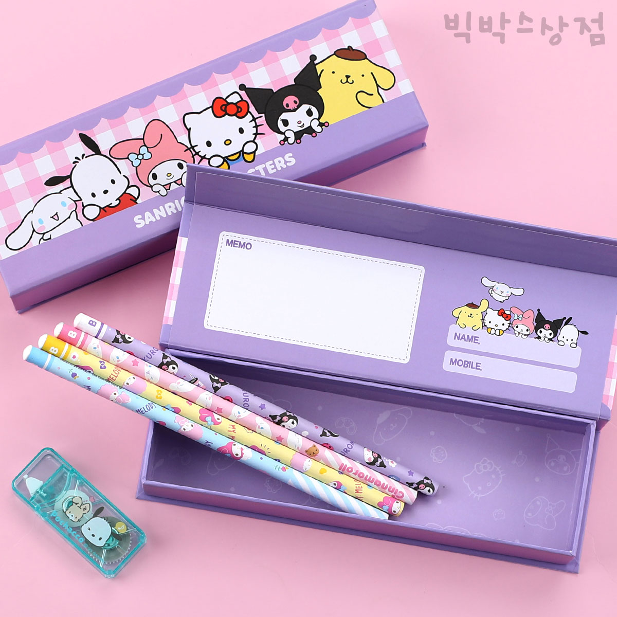 산리오 8본 연필 케이스 세트 어린이 단체선물 신학기 입학 필기구 헬로키티 시나모롤 쿠로미 마이멜로디 포차코