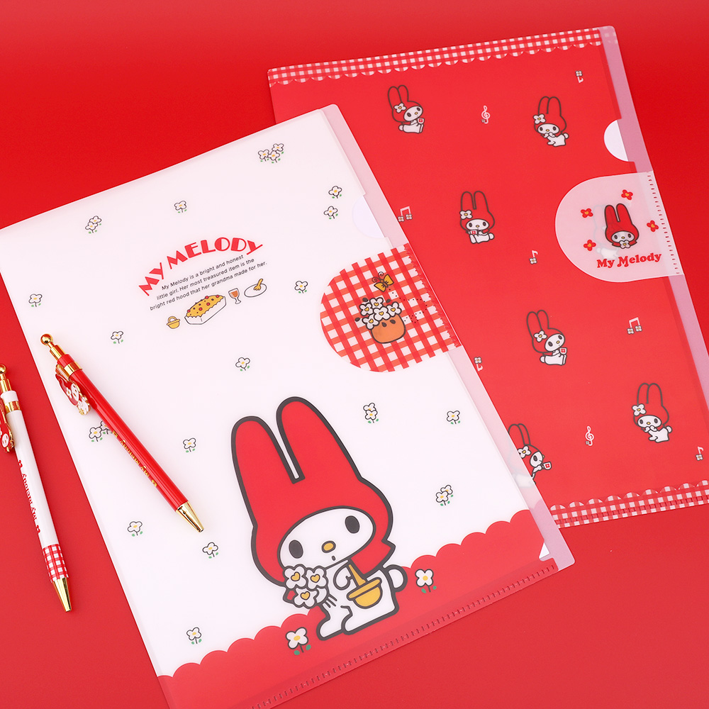 마이멜로디 레트로 덮개 L홀더 화일 가로형 서류 정리 문서보관 산리오 빨간마이멜로디