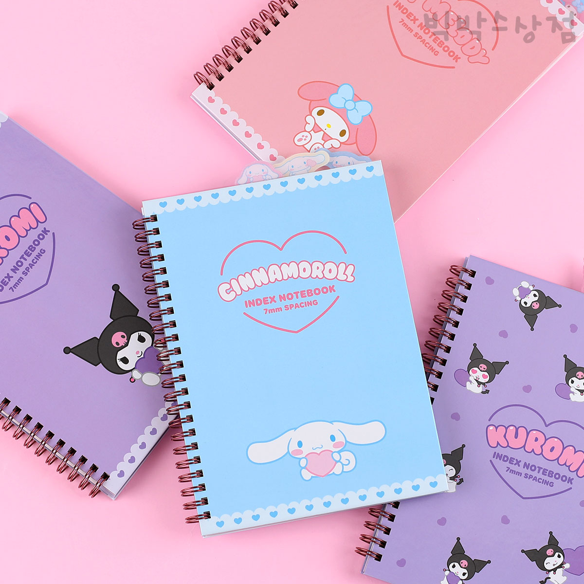 - 산리오 4인덱스노트 1p 캐릭터 공책 초등학생 메모 필기 하드커버 스프링노트 시나모롤 쿠로미 마이멜로디