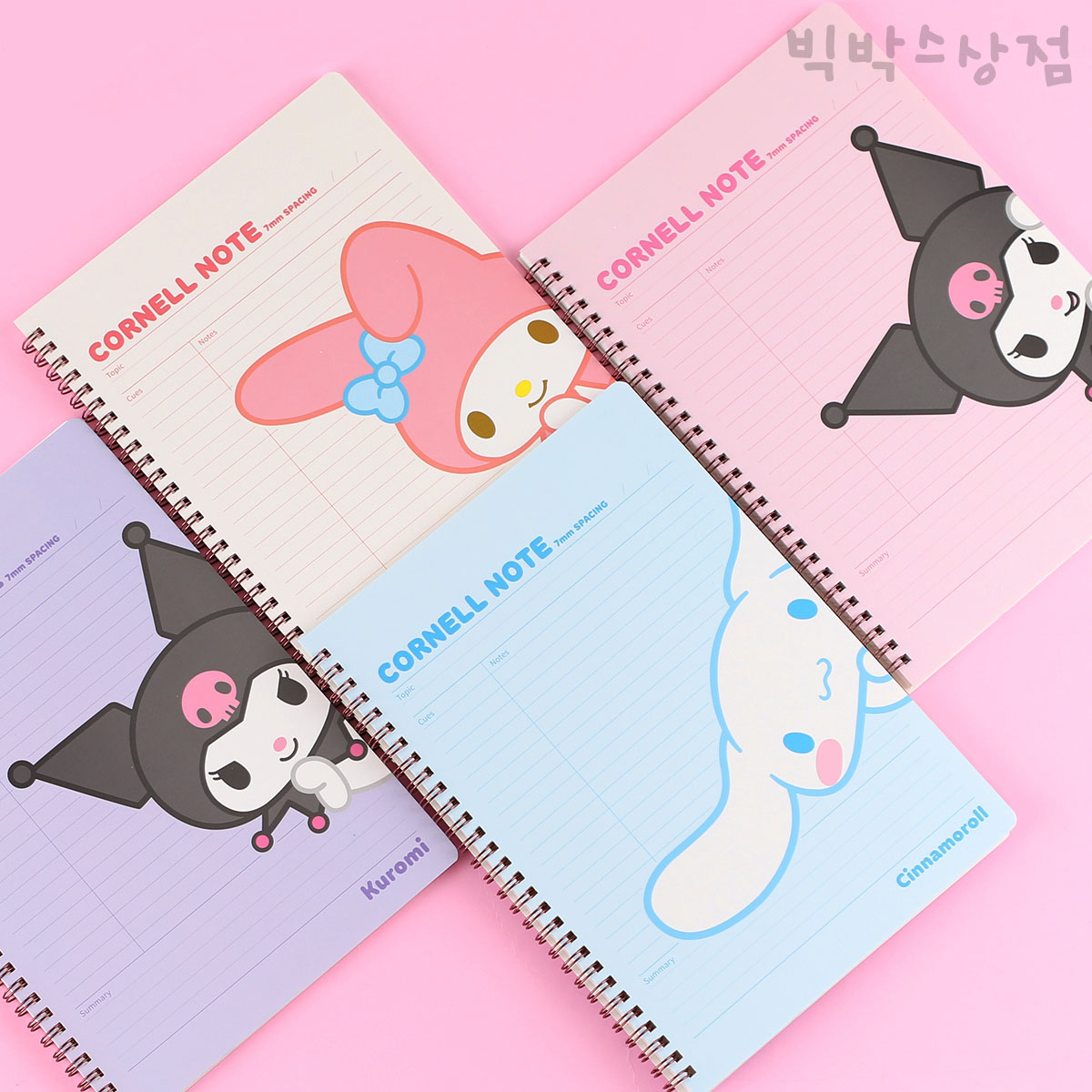 - 산리오 코넬노트 1p 캐릭터 공책 초등학생 메모 필기 그리드노트 원링 스프링 모눈노트 시나모롤 쿠로미 마이멜로디