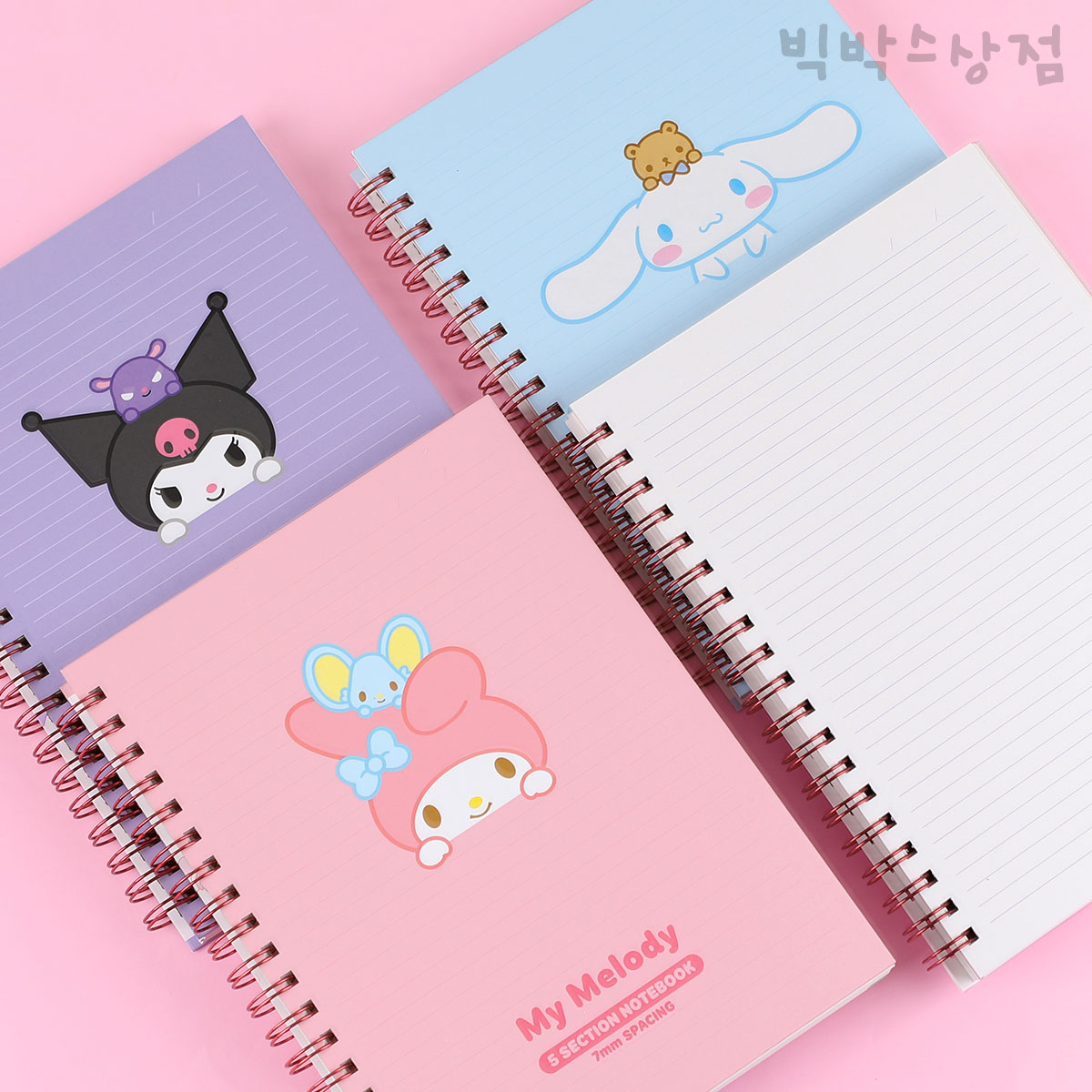 - 산리오 5섹션노트 1p 인덱스노트 두꺼운 무지 캐릭터 공책 초등학생 메모 필기 스프링노트 시나모롤 쿠로미 마이멜로디