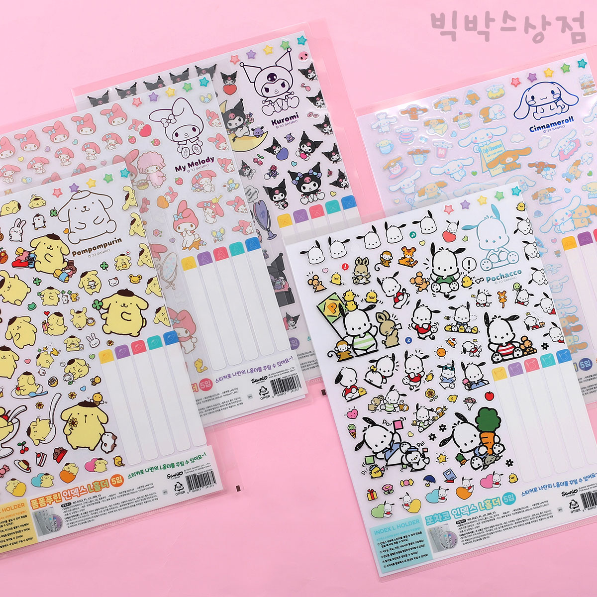 - 산리오 인덱스 L홀더 5입 1세트 문서보관 엘홀더 파일 서류보관 학용품 문구 팬시 캐릭터 마이멜로디 쿠로미 시나모롤 포차코